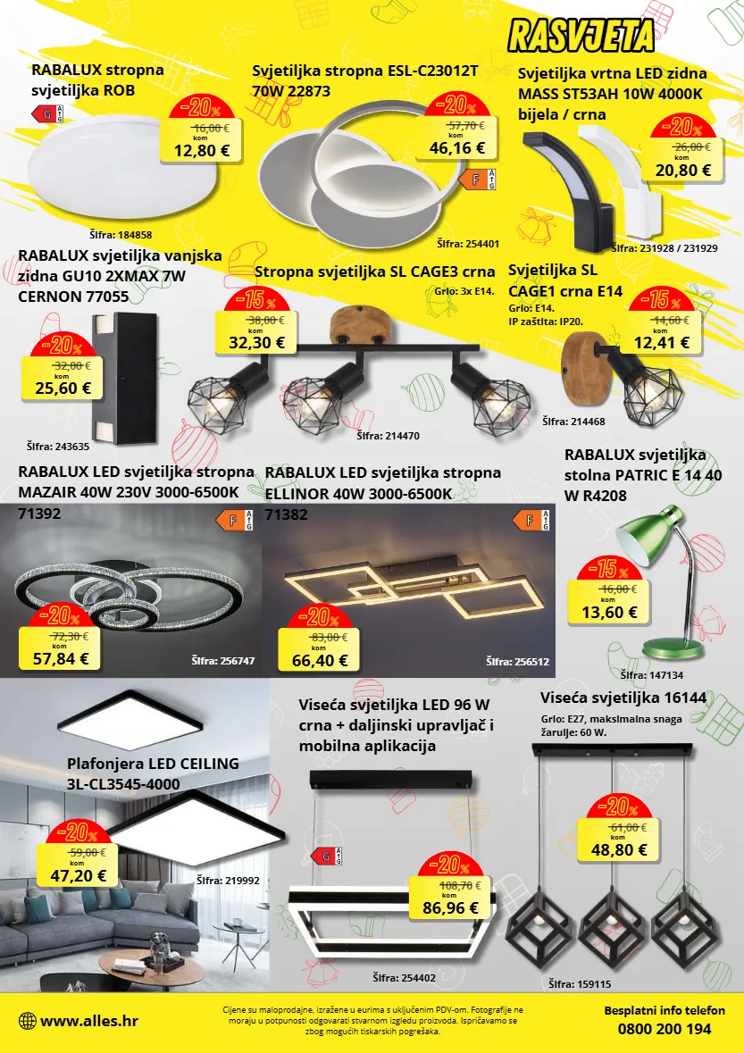 rabalux stropna svjetiljka rob 16,00 € 12,80 € kom -20 % 16,00 € 13,60 € kom -15 % svjetiljka stropna esl-c23012t 70w 22873 57,70 € 46,16 € kom -20 % svjetiljka vrtna led zidna mass st53ah 10w 4000k bijela / crna 26,00 € 20,80 € kom -20 % 38,00 € 32,30 € kom -15 % svjetiljka sl cage1 crna e14 14,60 € 12,41 € kom -15 % 61,00 € 48,80 € kom -20 % 59,00 € 47,20 € kom -20 % rabalux led svjetiljka stropna mazair 40w 230v 3000-6500k 71392 rabalux svjetiljka stolna patric e 14 40 w r4208 besplatni info telefon 0800 200 194 www.alles.hr cijene su maloprodajne, izražene u eurima s uključenim pdv-om. fotografije ne moraju u potpunosti odgovarati stvarnom izgledu proizvoda. ispričavamo se zbog mogućih tiskarskih pogrešaka. aifra: 184858 aifra: 147134 aifra: 254401 aifra: 231928 / 231929 stropna svjetiljka sl cage3 crna aifra: 214470 aifra: 214468 viseća svjetiljka 16144 aifra: 159115 grlo: e27, maksimalna snaga žarulje: 60 w. grlo: e14. ip zabtita: ip20. grlo: 3x e14. plafonjera led ceiling 3l-cl3545-4000 aifra: 219992 rabalux svjetiljka vanjska zidna gu10 2xmax 7w cernon 77055 aifra: 243635 šifra: 256747 aifra: 254402 viseća svjetiljka led 96 w crna + daljinski upravljač i mobilna aplikacija šifra: 256512 rabalux led svjetiljka stropna ellinor 40w 3000-6500k 71382 rasvjeta rasvjeta 32,00 € 25,60 € kom -20 % 83,00 € 66,40 € kom -20 % 72,30 € 57,84 € kom -20 % 108,70 € 86,96 € kom -20 %