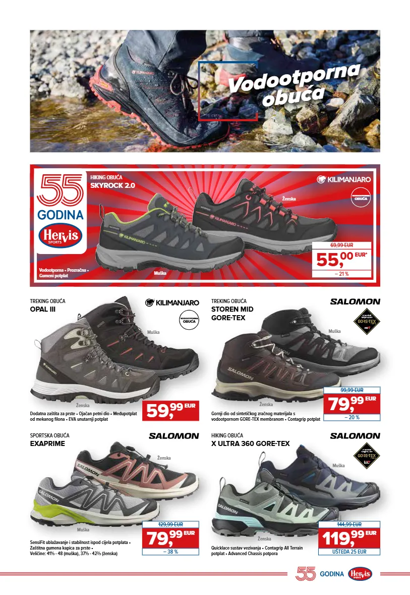 NAJBOLJA CIJENA: Ponuda vrijedi samo u odabranim trgovinama Hervis. NAJBOLJA CIJENA GODINA ZIMSKA OBUĆA HAUNANI Gornji dio od sintetičke kože • Podstava od flisa • Gumeni potplat • Veličine: 41 - 46 (muška), 37 - 42 (ženska) MUŠKA ILI ŽENSKA ZIMSKA OBUĆA LUMBER / PISA Gornjište od sintetičke kože • Mrežasta podstava • Veličine: 41 - 47 (muška), 36 - 41 (ženska) MUŠKA ZIMSKA OBUĆA HUMMER 54, 99 EUR 69,99 EUR – 21 % Lagan i neklizajući potplat • Gornjište od vodoodbojne sintetičke kože • Veličine: 40 - 47 MUŠKA ZIMSKA OBUĆA SALOME 39, 99 EUR Veličine: 40 - 46 44, 99 EUR 59,99 EUR – 25 % 55, 00 EUR* 129,99 EUR – 57 % Ženska Muška VODOOTPORNA OBUĆA ZIMSKA OBUĆA HILLARY II / ALASKA 79, 99 EUR Muška Ženska Na raspolaganju u odabranim trgovinama Hervis. DJEČJA ZIMSKA OBUĆA JUSTIN / JUDY Comfortex vodoodbojna membrana • Veličine: 28 - 40 39, 99 EUR VODOOTPORNA OBUĆA