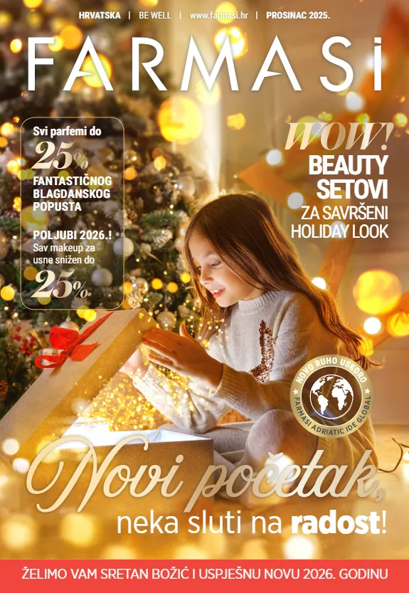 HRVATSKA | BE WELL | www.farmasi.hr | PROSINAC 2025. Novi pocetak, ŽELIMO VAM SRETAN BOŽIĆ I USPJEŠNU NOVU 2026. GODINU Svi parfemi do 25 % FANTASTIČNOG BLAGDANSKOG POPUSTA POLJUBI 2026.! Sav makeup za usne snižen do 25 % F A R M A S I A D R I A T I C I D E G L O B A L N O V O R U H O U S K O R O WOW! BEAUTY SETOVI ZA SAVRŠENI HOLIDAY LOOK neka sluti na radost !