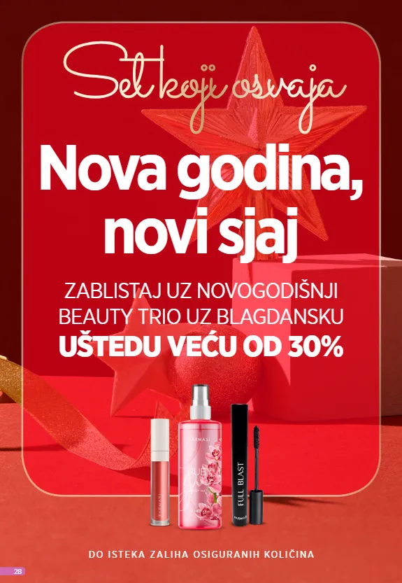 28 D O I S T E K A Z A L I H A O S I G U R A N I H K O L I Č I N A Nova godina, novi sjaj Set koji osvaja ZABLISTAJ UZ NOVOGODIŠNJI BEAUTY TRIO UZ BLAGDANSKU UŠTEDU VEĆU OD 30%