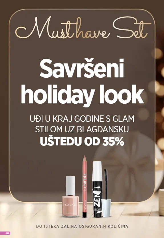 40 D O I S T E K A Z A L I H A O S I G U R A N I H K O L I Č I N A Savršeni holiday look Must have Set UĐI U KRAJ GODINE S GLAM STILOM UZ BLAGDANSKU UŠTEDU OD 35%
