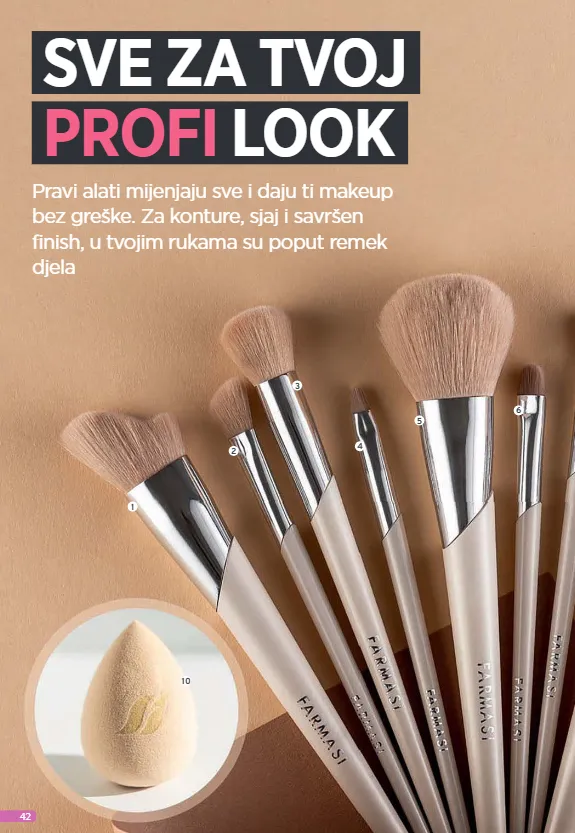 42 4 5 3 6 2 1 10 Pravi alati mijenjaju sve i daju ti makeup bez greške. Za konture, sjaj i savršen finish, u tvojim rukama su poput remek djela SVE ZA TVOJ PROFI LOOK