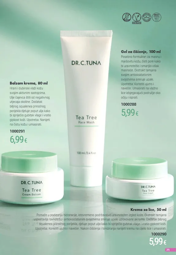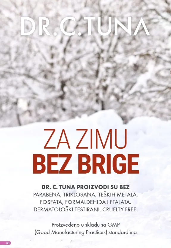 48 dr. c. tuna proizvodi su bez parabena, triklosana, teških metala, fosfata, formaldehida i ftalata. dermatološki testirani. cruelty free. proizvedeno u skladu sa gmp (good manufacturing practices) standardima za zimu bez brige
